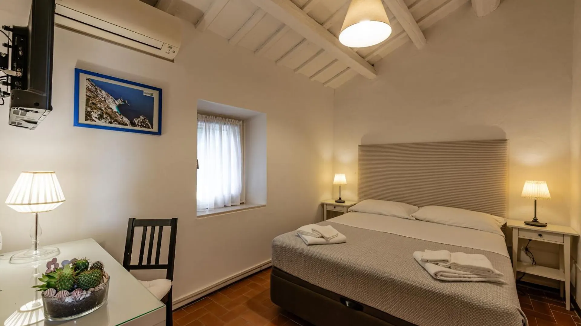 Tutte le camere dispongono del pavimento in pietra e offrono le viste sul giardino.